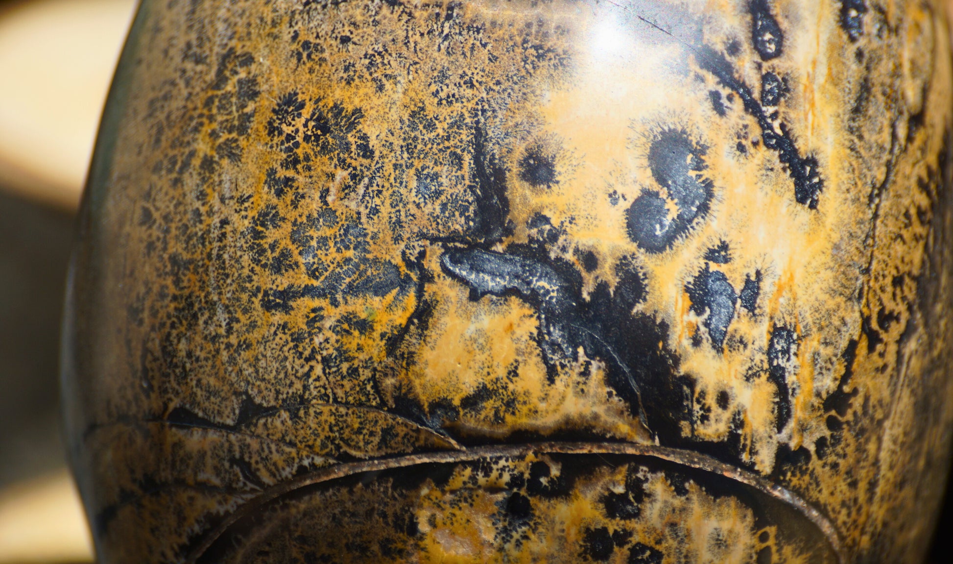 Crafted from picture jasper, a stunning blend of earthy brown hues with flecks of black, the skull displays anatomic precision in its design.